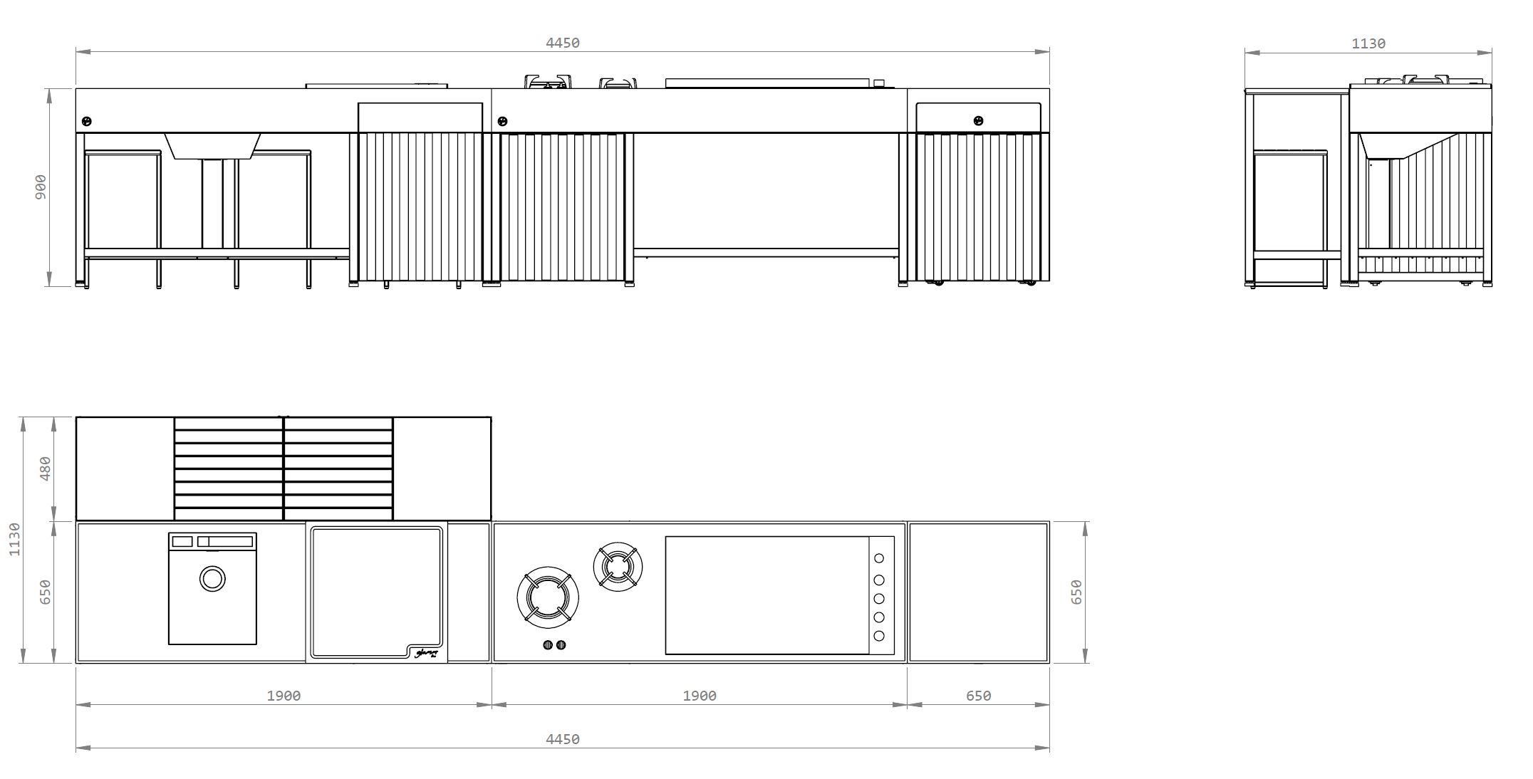1900 w x 480 d x 900 h mm
